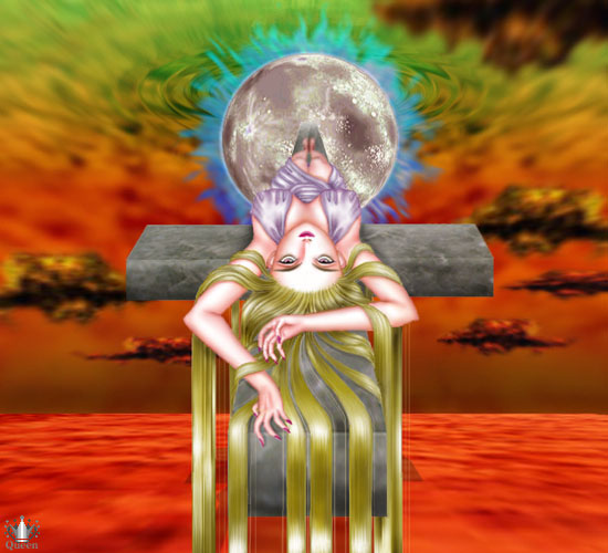 バレました?背景使いまわしです(^^;) 何の背景だったか、全て答えられる人は、とても女王フリークな有り難〜い方です(-人-) それはさておき・・・ パースが苦しいですねぇ。とても苦労しました。 十字架はサイクロン号作なんですが、手を加えてるうちによく見えなくなってしまいました。 もっと月が良く出来てるのがあったんですが、なんと保存するの忘れてて、後で泣きました(T_T) が、作り直すパワーも無く、そのまま今のを使いました。 月は古代から不思議な力を持っているといいますね。 月の光りが眩しい夜は、月光浴をしましょう。 ご鑑賞有り難うございましたm(_ _)m |